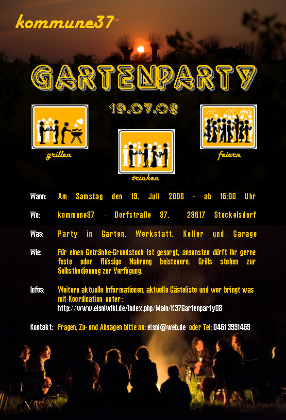 Garagen- Keller- und Gartenparty zur verspäteten Hauseinweihung und überhaupt. am 19. Juli 2008 ab 16:00 Uhr bei den Elsners, Bozabas und Rachows