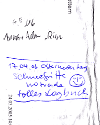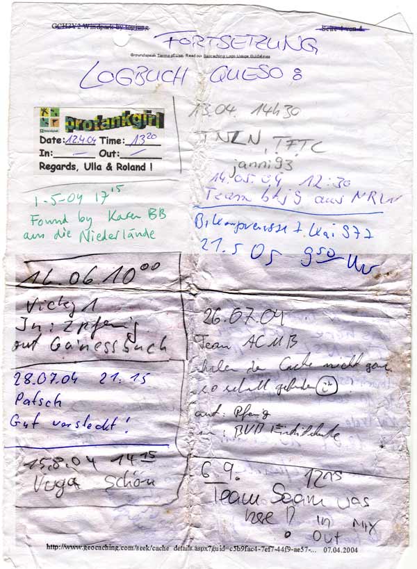Ich hätte nie gedacht, daß das der Din-A4-Zettel, den ich als "Logbuch" vorgesehen hatte jemals voll wird - habe aber auch nicht damit gerechnet, daß teilweise durch riesige Aufkleber etc. so viel Platz vergeudet wird.