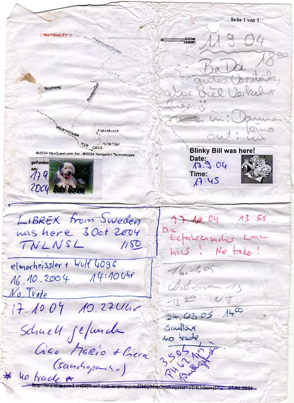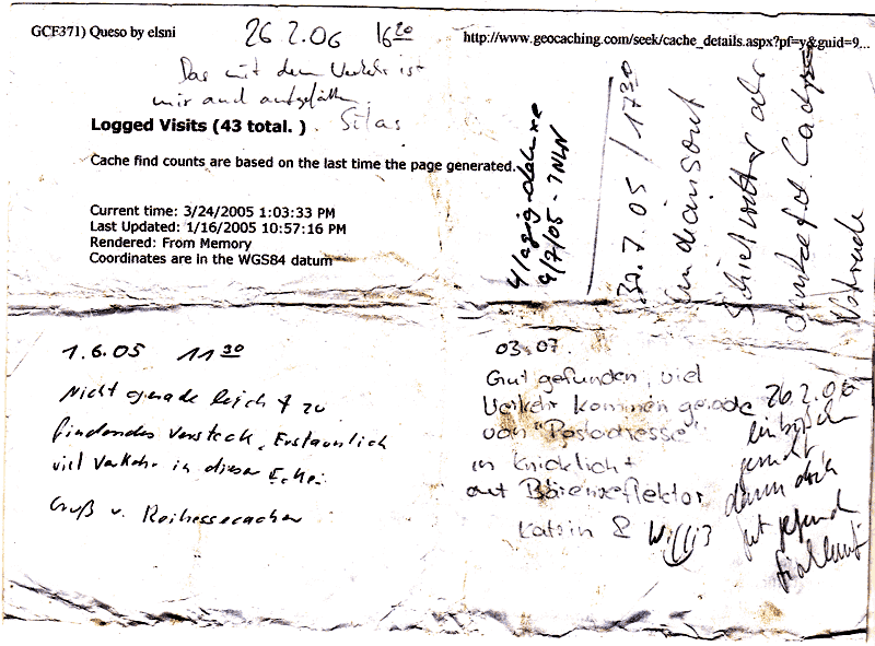 "Queso" ist mein einziger Geocache, der heute noch existiert, mittlerweile schon über drei Jahre (seit April 2003).